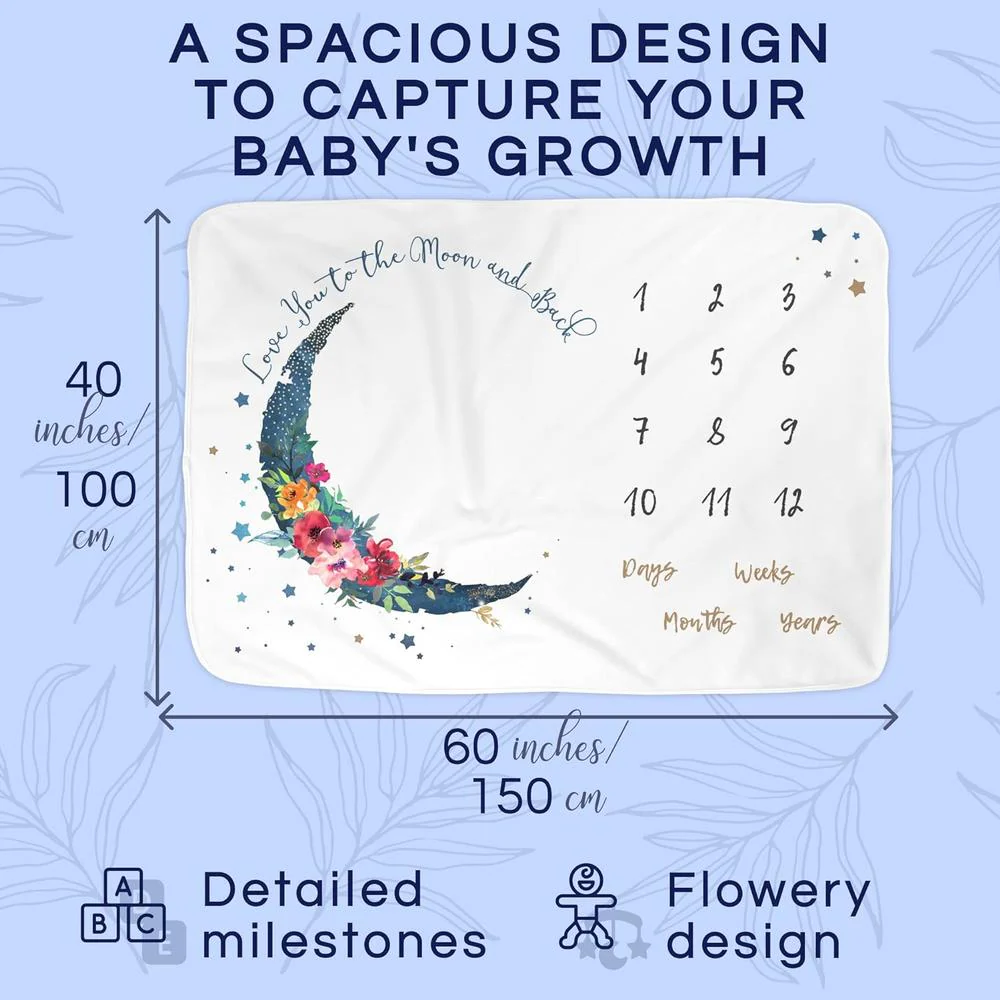 Luka&Lily Monthly Milestone Floral Moon Blanket